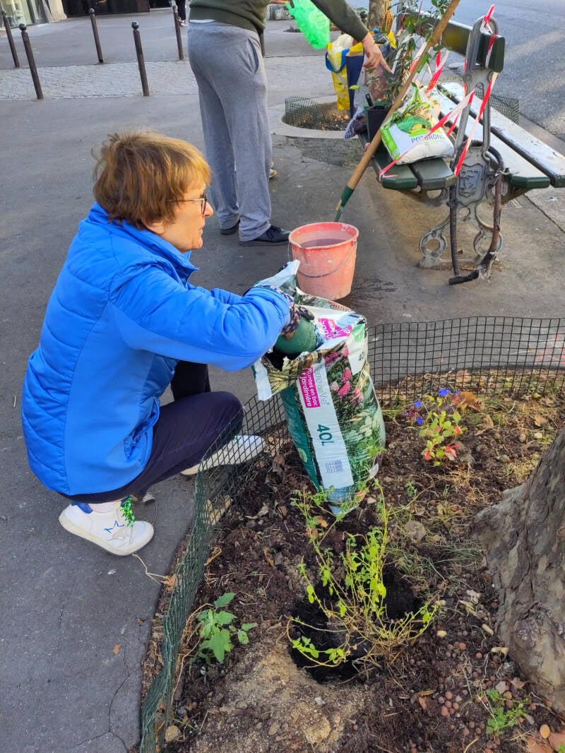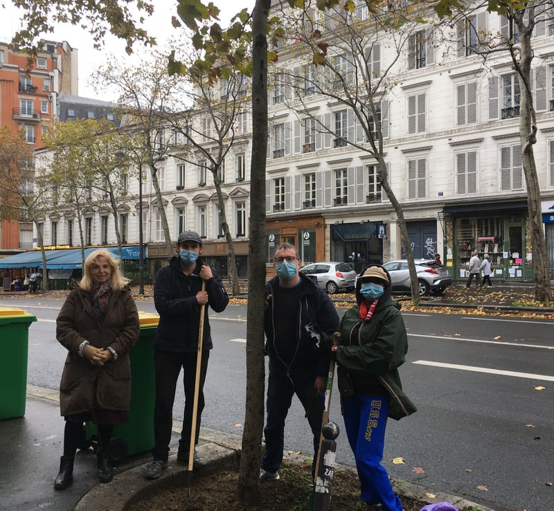 Cession de jardinage sur nos pieds d'arbres du boulevard Beaumarchais.